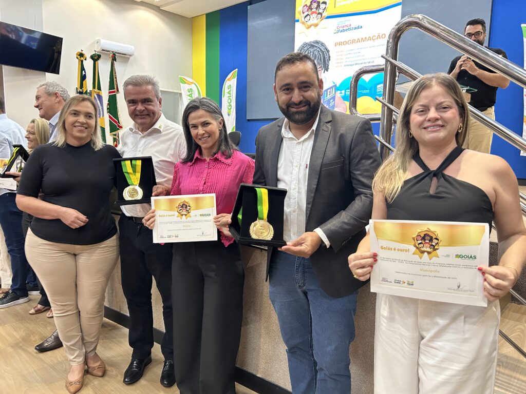 Silvânia vive mais um momento histórico na educação! O município recebeu, na Secretaria de Estado da Educação de Goiás, em Goiânia, o Selo Ouro – Alfabetização da Criança Alfabetizada, reconhecimento que destaca o compromisso da rede municipal com a alfabetização na idade certa e com a construção de um futuro melhor para nossas crianças.